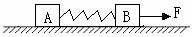 如图所示,一轻弹簧左端与物体A相连,右端与物体B相连,开始时,A、B均在粗糙水平面上不动,弹簧处于原长状态。在物体B上作用一水平向右的恒力F,使物体A、B向右运动。在此过程中,下列说法中正确的为