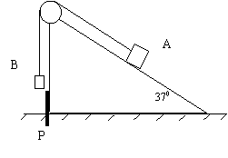 倾角为37°的斜面体靠在固定的竖直挡板P的一侧,一根轻绳跨过固定在斜面顶端的定滑轮,绳的一端与质量为mA=3kg的物块A连接,另一端与质量为mB=1kg的物块B连接。开始时,使A静止于斜面上,B悬空,如图所示。现释放A,A将在斜面上沿斜面匀加速下滑,求此过程中,挡板P对斜面体的作用力的大小。(所有接触面产生的摩擦均忽略不计,sin37°=0.6,cos37°=0.8,g=10m/s2)