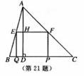 如图,在△ABC中,∠C=45°,BC=10,高AD=8,矩形EFPQ的一边QP在边上,E、F两点分别在AB、AC上,AD交EF于点H。