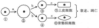 4.下图为人体细胞的分裂、分化、衰老和凋亡过程的示意图,图中①一⑥为各个时期的细胞,a-c表示细胞所进行的生理过程。据图分析,下列叙述正确的是( )