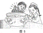 21. 小芸和小刚在鱼缸边玩耍,鱼儿被吓跑了,如图5所示,小芸认为是自己的动作吓跑了鱼儿,小刚却提出是他们的声音惊走了鱼儿,请你设计一个实验方案帮助他们作出判断。