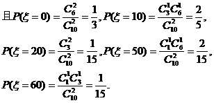 (Ⅱ)ξ的所有可能值为:0,10,20,50,60(元).