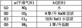 6.在下图装置中,烧瓶中充满干燥气体a,将滴管中的液体b挤入烧瓶内,轻轻振荡烧瓶,然后打开弹簧夹f,烧杯中的液体b呈喷泉状喷出,最终几乎充满烧瓶.则a和b分别是 ( )