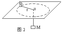 物体m用线通过光滑的水平板间小孔与砝码M相连,并且正在做匀速圆周运动,如图2所示,如果减少M的重量,则物体m的轨道半径r,角速度ω,线速度v的大小变化情况是 ( )