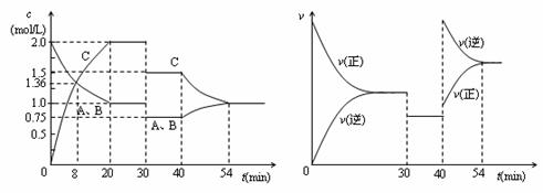 2C(g),达到平衡后,只改变反应的一个条件,测得容器中物质的浓度、反应速率随时间变化如下图所示。下列说法中正确是