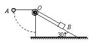 如图所示,一根不可伸长的轻绳两端分别系着小球A和物块B,跨过固定于斜面体顶端的小滑轮O,倾角为30°的斜面体置于水平地面上.A的质量为m,B的质量为3m.开始时,用手托住A,使OA段绳恰处于水平伸直状态(绳中无拉力),OB绳平行于斜面,此时B静止不动.将A由静止释放,在其下摆过程中,斜面体始终保持静止,下列判断中错误的是 (