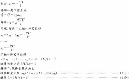 (k>1)断开轻绳,棒和环自由下落,棒与地面发生碰撞时,触地时间极短,无动