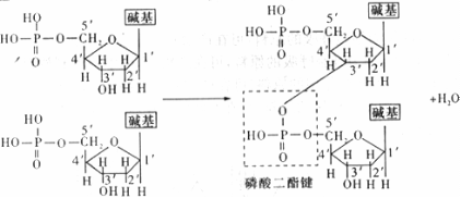 2.下图表示两个脱氧核苷酸分子在DNA聚合酶作用下的聚合过程。若由脱氧核苷算分子聚合形成的小分子DNA共有500个碱基对,则其缩合过程中形成的磷酸二酯键数、产生的水分子数、该DNA分子中羟基(-OH,碱基中不含羟基)数分别是