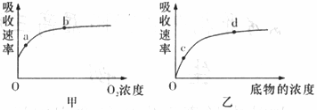 4.下图甲、乙分别是洋葱根尖在不同含氧量及不同底物浓度情况下(其他条件适宜),从含硝酸钾的全营养液中吸收NO3离子吸收速率曲线图。相关描述不正确的是