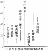 5.右图表示不同生态环境下生长的植物其细胞渗透压的大小范