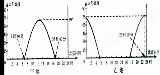(2)此日当乙地太阳高度最高时,太阳直射点的地理坐标大约是 。