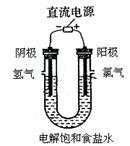 2OH-+H2↑+Cl2↑,阴极产物是H2和NaOH,阴极被电解的H+是由水电离产生的,故阴极水的电离平衡被破坏,阴极区溶液呈碱性。若在阴极区附近滴几滴酚酞试液,可发现阴极区附近溶液变红。阳极产物是氯气,将湿润的KI淀粉试纸放在阳极附近,试纸变蓝。