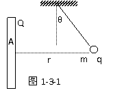 10. 如图1-3-1,A为带正电荷Q的金属板,沿金属板的垂直平分线在距离板r处放一质量为m、电量为q的小球,小球受水平向右的电场力作用而偏转θ角后静止。设小球是用绝缘丝线悬挂于O点,求小球所在处的电场强度。