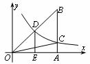 经过直角三角形OAB斜边OB的中点D,与直角边AB相交于点C.若△OBC的面积为3,则k=____________.
