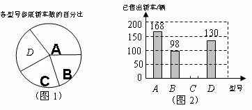 型号轿车销售的成交率为50%,其它型号轿车的销售情况绘制在图1和图2两幅尚不完整的统计图中.