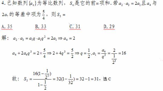 (2010全国卷1理数)(4)已知各项均为正数的等比数列{
