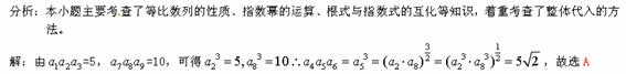 4.A[命题意图]本小题主要考查等比数列的性质、指数幂的运算、根式与指数式的互化等知识,着重考查了转化与化归的数学思想.