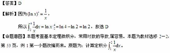 [命题意图]本题考查定积分的基础知识,由定积分求曲线围成封闭图形的面积。