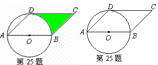 25.(8分)如图,AB是⊙O 的直径,点D在⊙O上,∠DAB=45°,BC∥AD,CD∥AB.