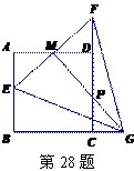 28.(8分)如图,正方形ABCD的边长是2,M是AD的中点.点E从点A出发,沿AB运动到点B停止.连接EM并延长交射线CD于点F,过M作EF的垂线交射线BC于点G,连接EG、FG.