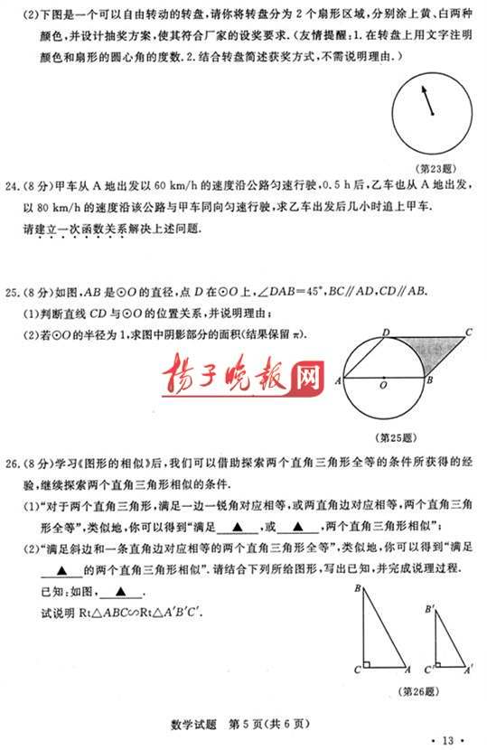 26.(8分)学习《图形的相似》后,我们可以借助探索两个直角三角形全等的条件所获得的经验,继续探索两个直角三角形相似的条件