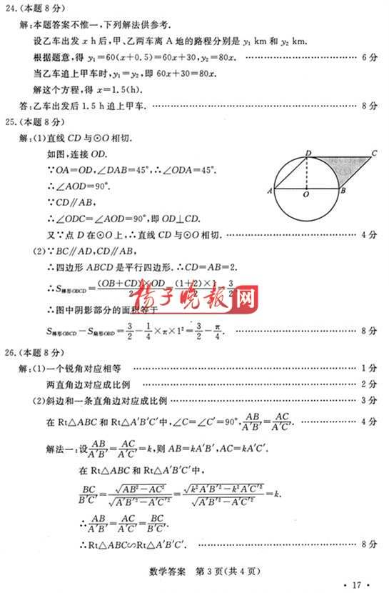 24.(8分)甲车从A地出发以60km/h的速度沿公路匀速行驶,0.5h后,乙车也从A地发出,以80km/h的速度沿该公路与甲车同向匀速行驶求乙车出发后几小时追上甲车.