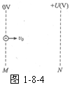 如图1-8-4所示,M和N是匀强电场中的两个等势面,相距为d,电势差为U.一质量为m(不计重力)、电荷量为-q的粒子,以速度v0通过等势面M射入两等势面之间,此后穿过等势面N的速率应是( )