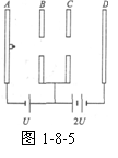 3.在如图1-8-5所示的装置中,B和A两板间的电压为U,C和D两板间电压为2U从F处释放出一个无初速度的电子,电荷量为e.关于电子的运动,下列描述中哪些是正确的( )