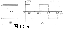 4.如图1-8-6甲所示,在两极板a、b之间有一静止的电子,当在a、b之间加上如图1-8-6乙所示的变化电压时(开始时a板带正电),电子的运动情况是(不计重力,板间距离足够大) ( )