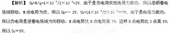 4]将一电量为一2×10-8C的点电荷,从零电势S点移到电场中的M点,反抗电场力做功4×10-8J,则UM=