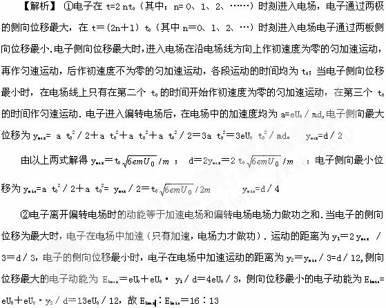 ①电子通过两板时侧向位移的最大值和最小值.![]()