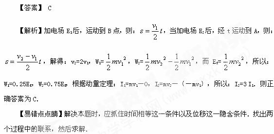 .在上述过程中,E1对滑块的电场力做功为W1,冲量大小为I1;E2对滑块的电场力做功为W2,冲量大小为I2.则( )![]()