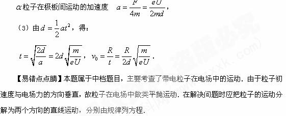 [易错点点睛]电子在电场中的分段运动分析清楚后,在电场中侧向位移是可求的,电子离开偏转电场时的动能则必须注意到电子进入两平行金属板后,在加速阶段有电场力对电子做功,在无电场时的匀速运动阶段没有电场力做功.![]()