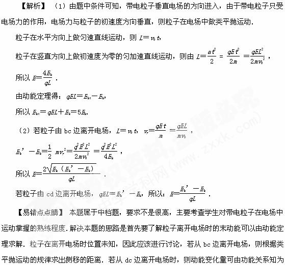 ΔEK=W=qEL.而对粒子离开电场位置的讨论问题是解决本题时尤其引起注意。