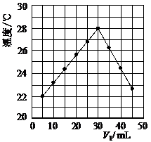 11. (07年高考广东化学卷·14)将V1 mL 1.0 mol/L HCl溶液和V2 mL未知浓度的NaOH溶液混合均匀后测量并记录溶液温度,实验结果如图所示(实验中始终保持V1+V2=50 mL)。下列叙述正确的是B