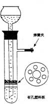 图所示的装置制取氢气,在塑料隔板上放粗锌粒.漏斗和带支管的试管中装有稀硫酸,若打开弹簧夹。则酸液由漏斗流下,试管中液面上升与锌粒接触,发生反应,产生的氢气由支管导出;若关闭弹簧夹,则试管中液面下降,漏斗中液面上升,酸液与锌粒脱离接触.反应自行停止。需要时再打开弹簧夹,又可以使氢气发生。这是一种仅适用于室温下随制随停的气体发生装置。回答下面问题: