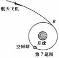(南通、扬州、泰州三市2008届第二次调研)我国未来将建立月球基地,并在绕月轨道上建造空间站.如图所示,关闭动力的航天飞机在月球引力作用下向月球靠近,并将与空间站在B处对接,已知空间站绕月轨道半径为r,周期为T,引力常量为G,下列说法中正确的是 (