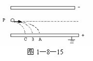 6.有三个质量相等的小球,分别带正电、负电和不带电,以相同的水平速度由P点射入水平放置的平行金属板间,它们分别落在下板的A、B、C三处,已知两金属板的上板带负电荷,下板接地,如图1-8-15所示,下列判断正确的是 ( )