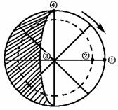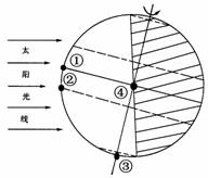20、读下图,阴影部分表示夜间,箭头表示地球自转方向,此时 ( )