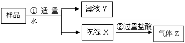 (3)取滤液Y,测得其pH > 7,向其中滴入硫酸钠溶液,未观察到任何现象,则滤液Y中一定含有的含氧酸根离子是(用离子符号表示) 、 ,由此推测“将过量的气体Z通入滤液Y中”的实验现象是 。