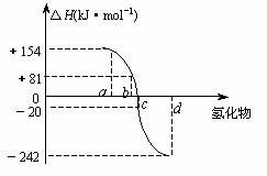30、(12分)已知:在热力学标准态(298K、1.01×105Pa)下,由稳定的单质发生反应生成1mol化合物的反应热叫该化合物的生成热(△H)。下图为氧族元素氢化物a、b、c、