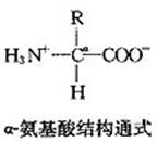 从蛋白质水解产物中分解出来的常见氨基酸有20种。这些氨基酸(除脯氨酸外)在结构上的共同点是:与羧基相邻的α-碳原子上都有一个氨基,因而叫做α-氨基酸,它们的结构通式如下: