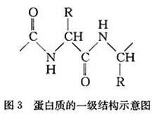 蛋白质的一级结构 蛋白质分子中的氨基酸都是按一定的排列顺序组成肽链的。氨基酸在多肽链中的排列顺序(包括氨基酸的种类、数量)和方式叫做蛋白质的一级结构。蛋白质的一级结构也叫初级结构或化学结构(图3)