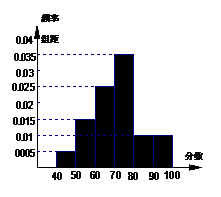 (北京市东城区2008年高三综合练习二)从某区一次期末考试中随机抽取了100个学生的数学成绩,用这100个数据来估计该区的总体数学成绩,各分数段的人数统计如图所示. 从该区随机抽取一名学生,则这名学生的数学成绩及格(