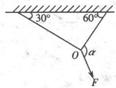 A如图所示.两轻绳与水平天花板间的夹角分别是30°和60°,在两绳的相交点O处作用大小为8N的拉力F,则当α=_______时,两绳中的张力大小相等,其张力大小_______为N.