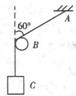 B如图所示,轻绳绕过一光滑的小圆柱B,上端固定于A点,下端系一个重为120N的物体C,AB段绳子与竖直方向的夹角为60°,则绳中的张力大小为_______N,小圆柱B所受的压力大小为_______N.