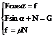 C如图所示,木箱重为G,与水平地面间的动摩擦因数为μ,现用斜向上的力F拉木箱使之沿水平面匀速前进,问F与水平方向的夹角α为何值时拉力F最小?这个最小值是多少?