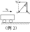 例2 在一无风的雨天,雨滴竖直下落至地表的速度v1=8 m/s,一辆汽车以v2=6 m/s的速度匀速行驶,求车上的人看到雨滴的速度大小与方向。