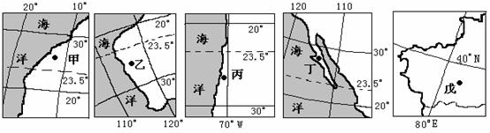 7.图中五地年降水稀少,其影响因素中与甲地相似度最大的是