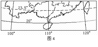 图4为某区域局部经纬线图,假设该区域全属于白天,据此回答9-10题